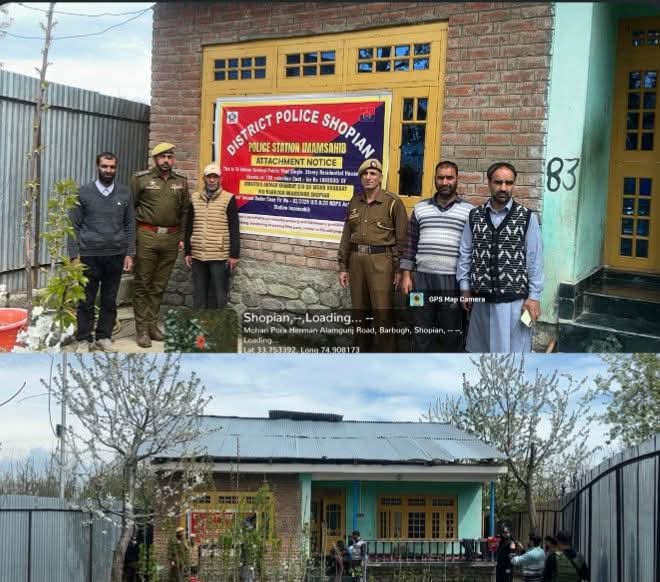 Shopian, March 28, KNT: Police in Shopian on Saturday attached a single-storey residential house valued at Rs 18.88 lakh in Barbugh Imamsahib area, officials said.