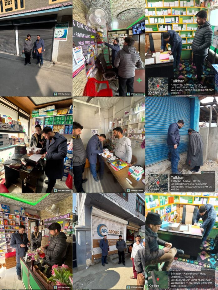 Anantnag, Feb 13: Acting on directions to ensure strict enforcement of drug regulations, the Drugs Control Department, Anantnag carried out intensive inspections across Bijbehara and adjoining areas today sources said.